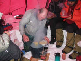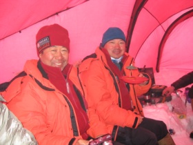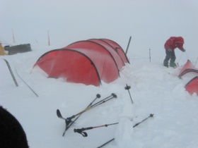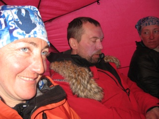 Temperatur soll bei -25°C liegen. Schon jetzt kräftige Winde. Die Temperatur ist