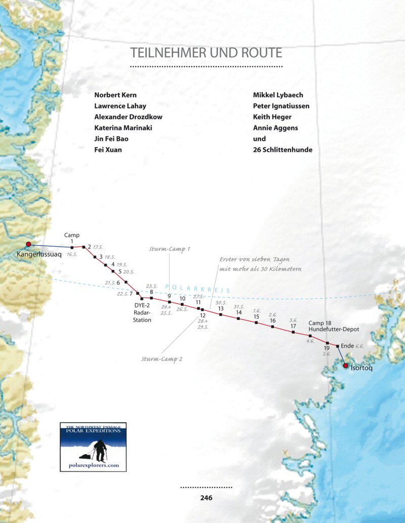 Inlandeis Grönlands von West nach Ost zu überqueren. Es handelt sich hier um