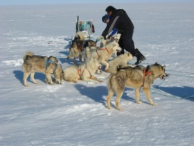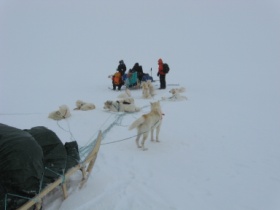 Das Gepäck für ca. 3 bis 4 Wochen wird von Grönland-Hunden unter der Führung