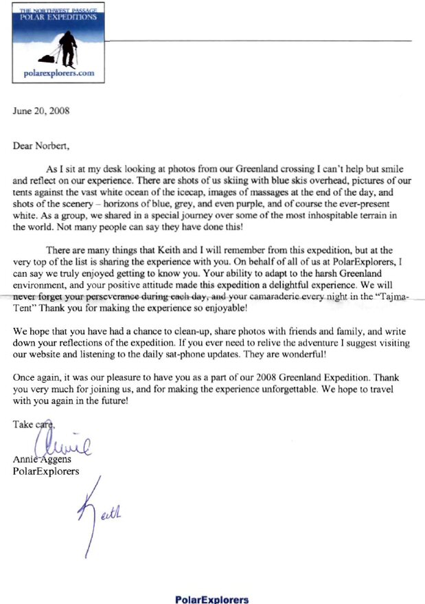 der Expeditionsleiter zum Nordpol war. Norbert hofft, seiner Frau täglich einen